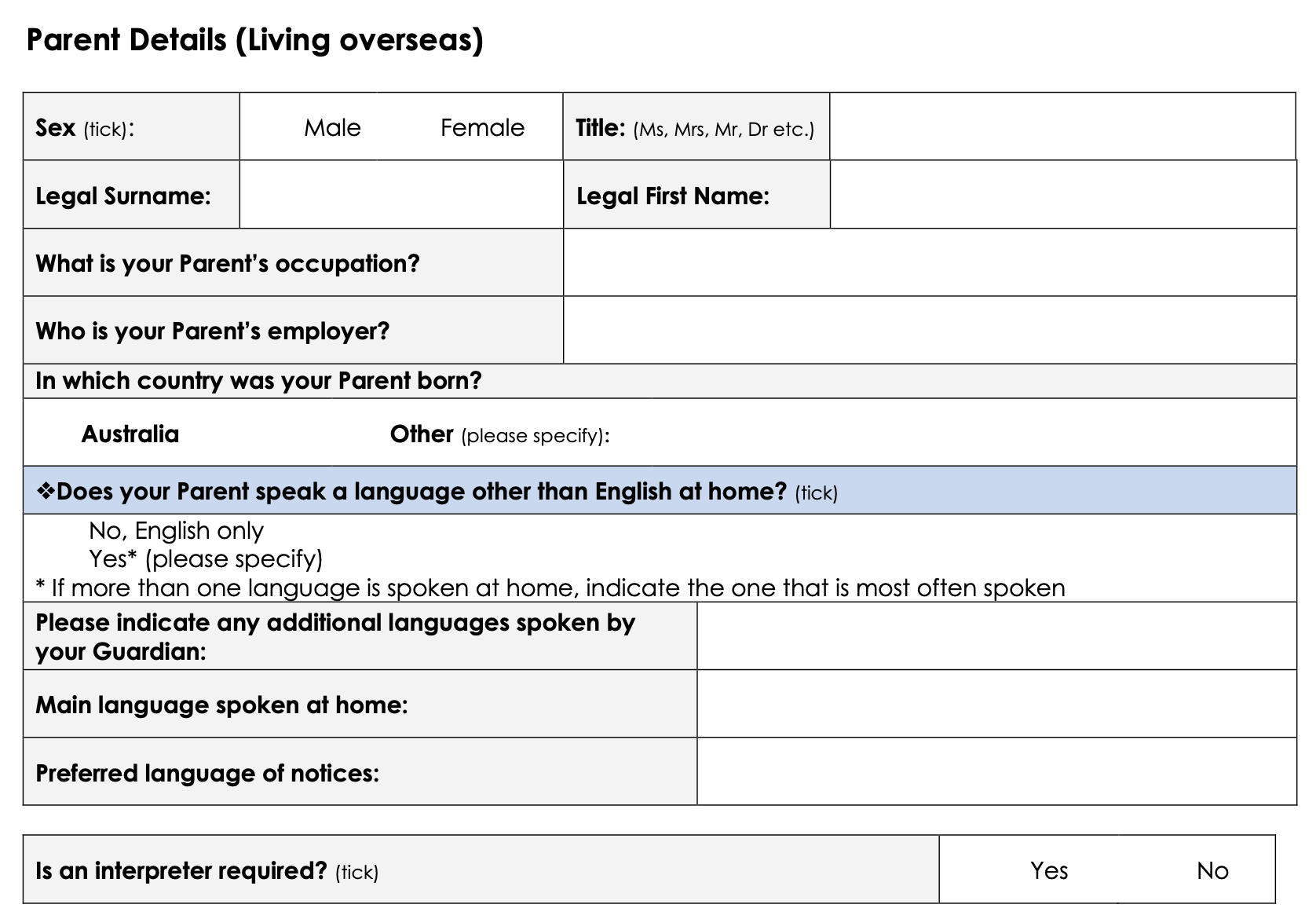 Victorian Government school enrollment form
